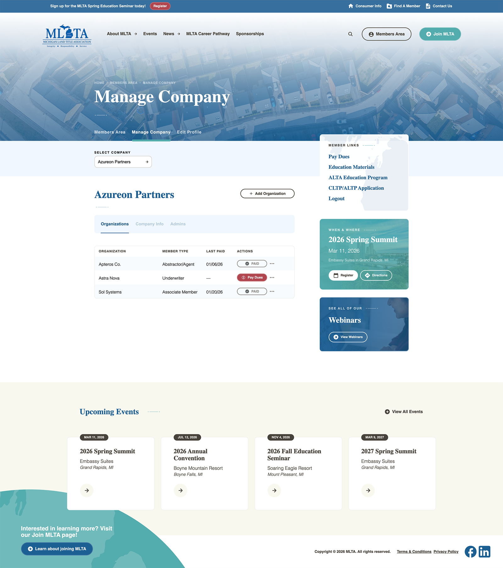 MLTA’s previous website functioned primarily as a public information hub. Members could access gated content and submit dues through a generic payment form, but core workflows, including dues tracking, company management, and annual data updates, were handled off-site through manual processes.