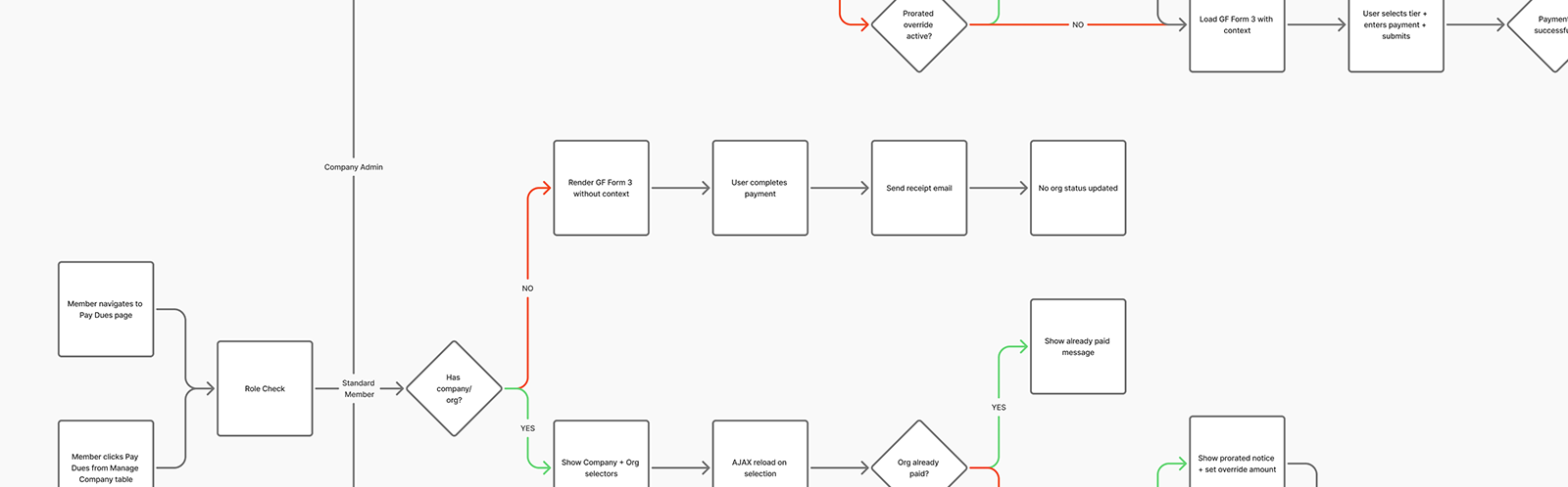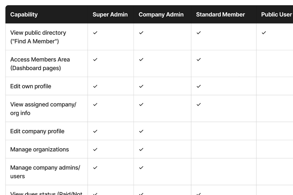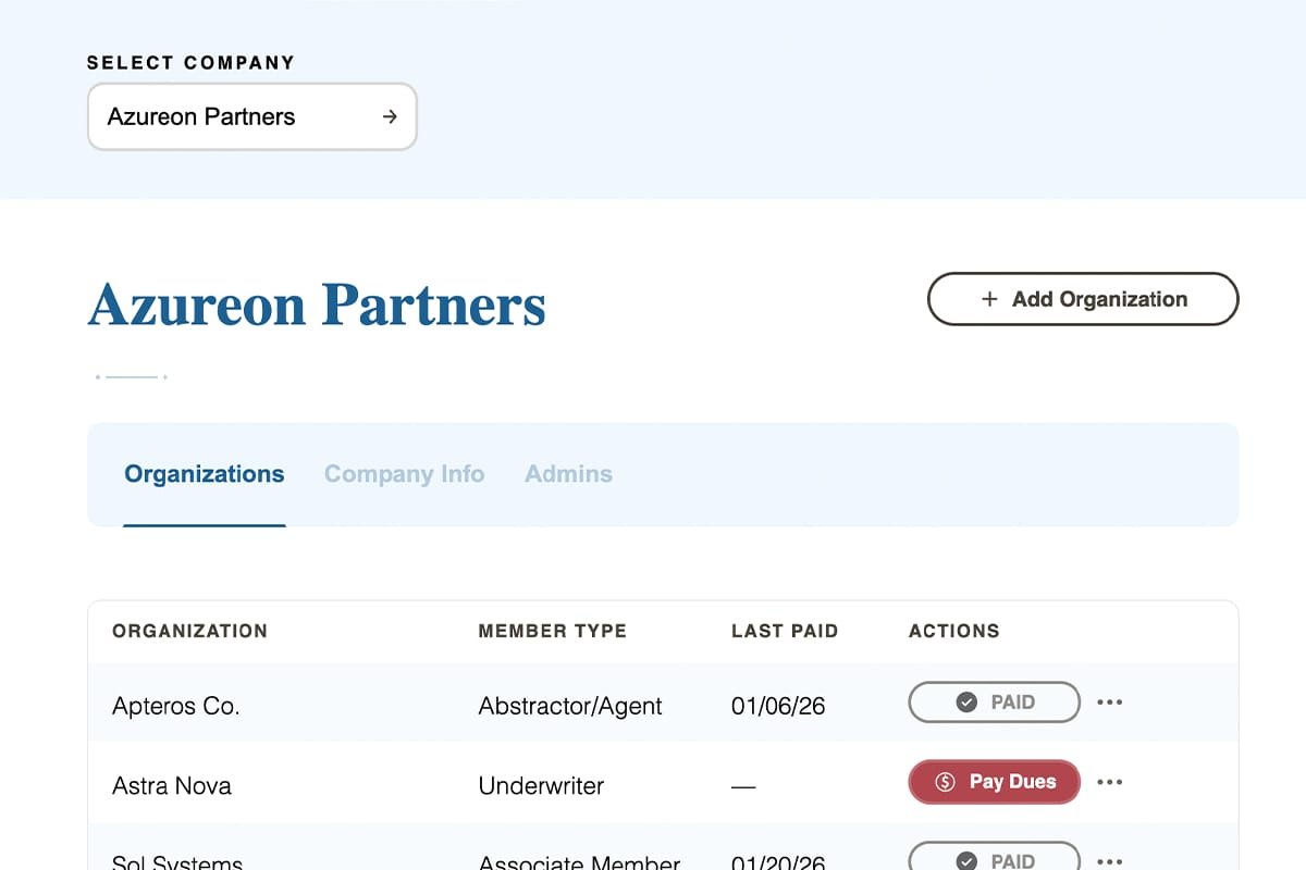 There was no structured member dashboard, no contextual dues visibility, and no integrated lifecycle management.