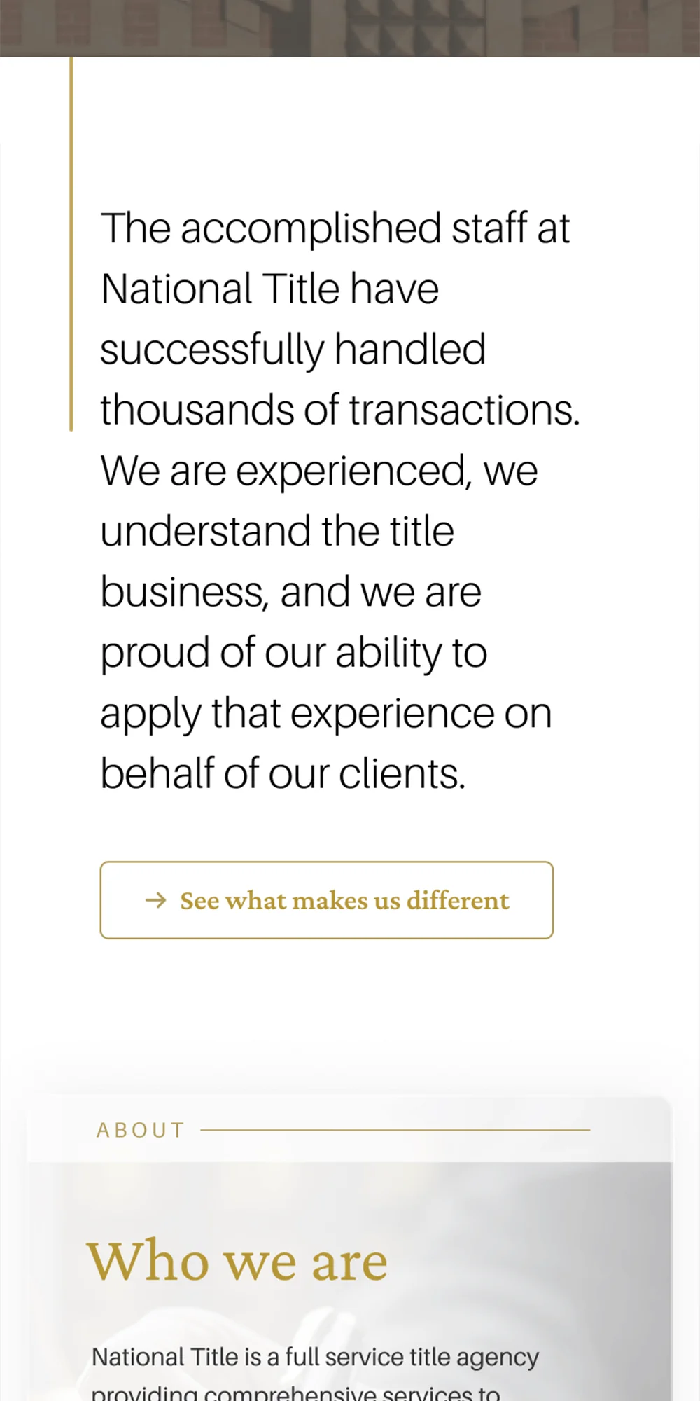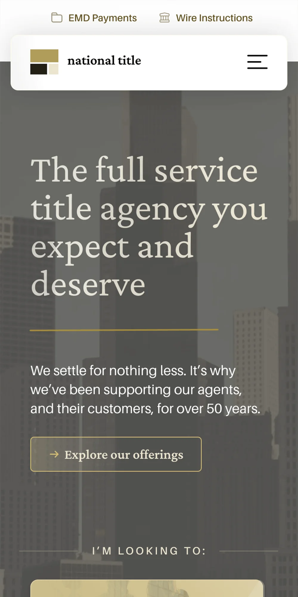 Note: de-branded until build of final design is complete and launched – the company is not called National Title!
